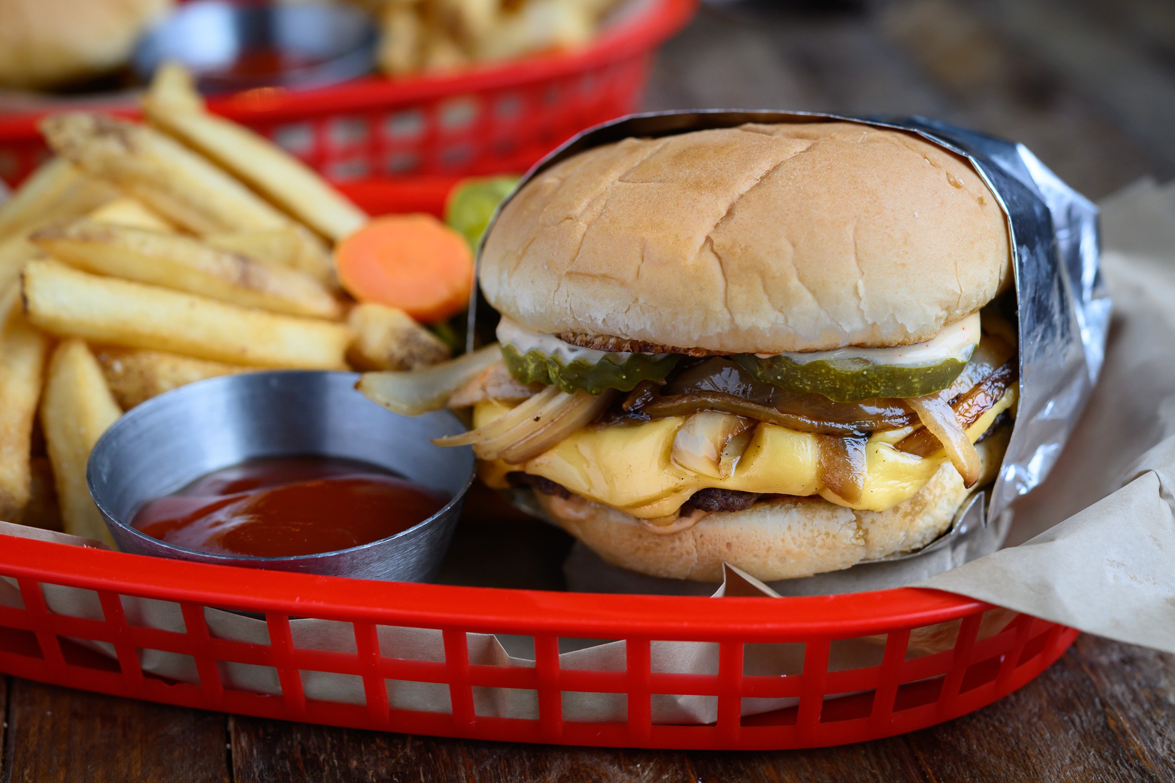 Custom-ground Snake River Farms Wagyu beef, double American cheese, caramelized onions, Tavern Burger Sauce, dill pickles, served on a classic American bun. Add: Smoked Bacon $1